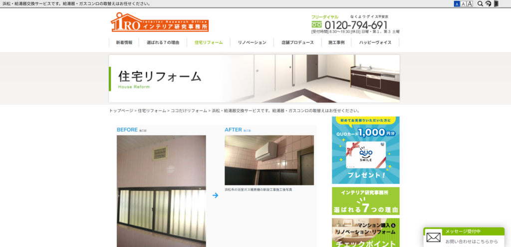 浜松・給湯器交換サービス住所:お問い合わせください受付時間:お問い合わせください