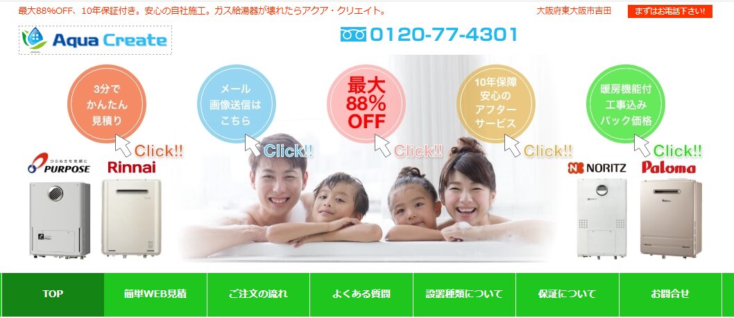 ・最大82%OFF!ガス給湯器本体+工事費も激安価格