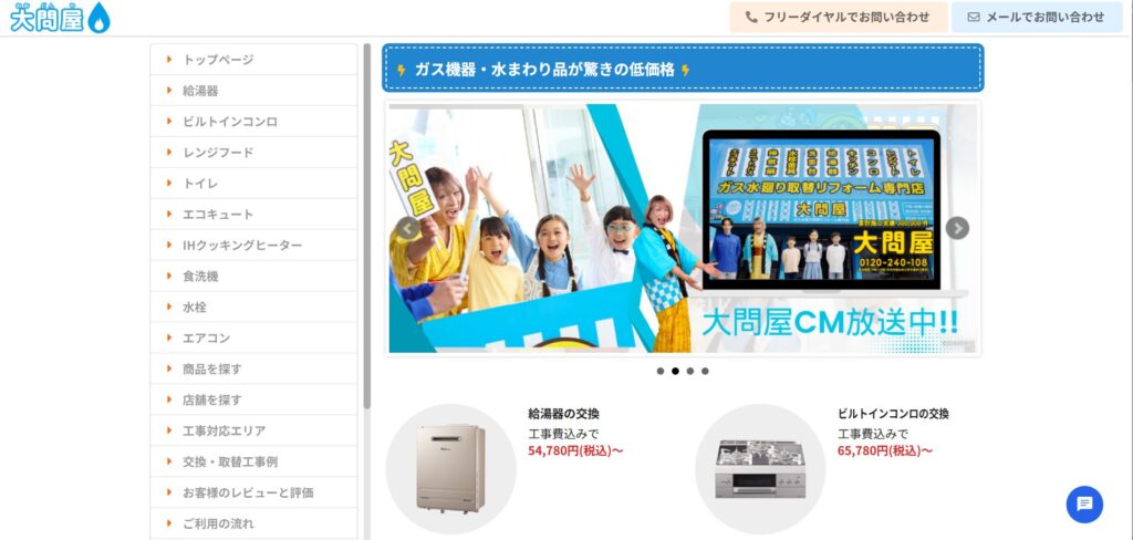 - 給湯器・コンロ等の本体価格が大幅割引