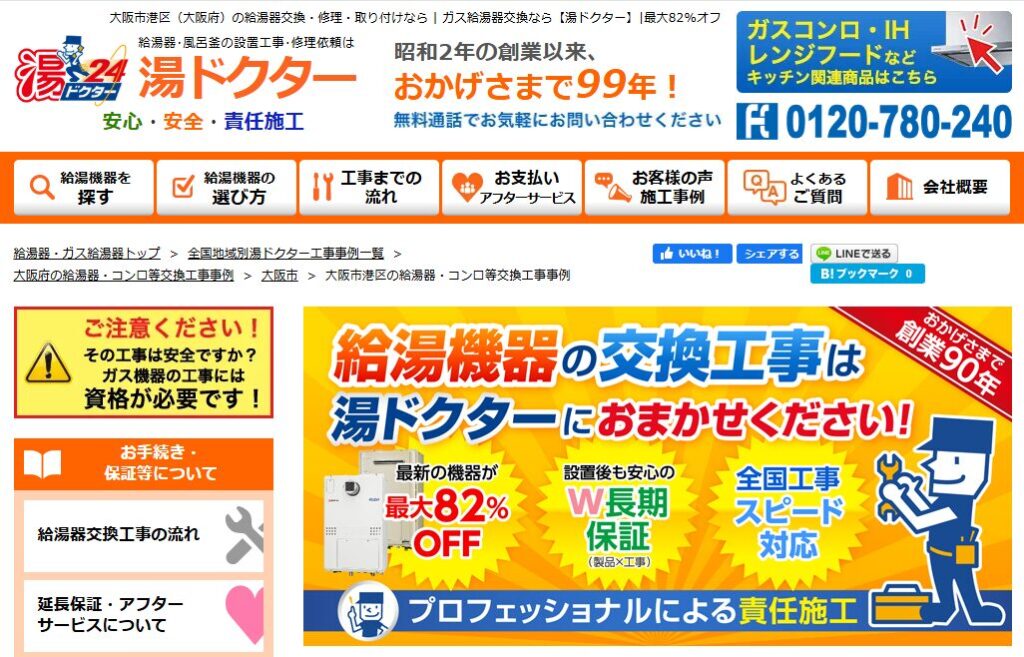 累計工事実績3万件以上の豊富な実績を持ち、給湯器三大メーカー正規販売店なので安心感があります。