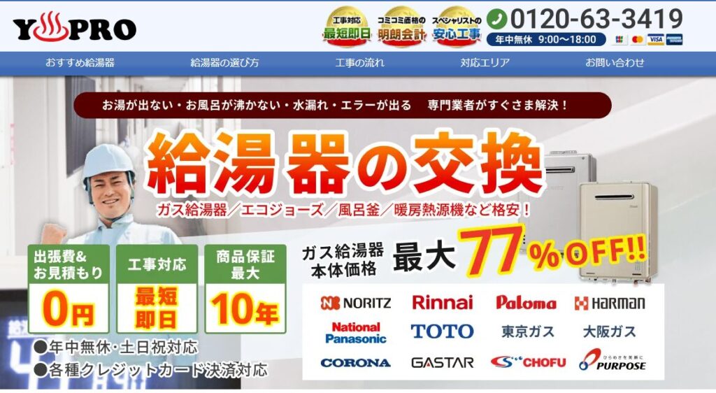 累計工事実績3万件以上の豊富な実績を持ち、給湯器三大メーカー正規販売店なので安心感があります。