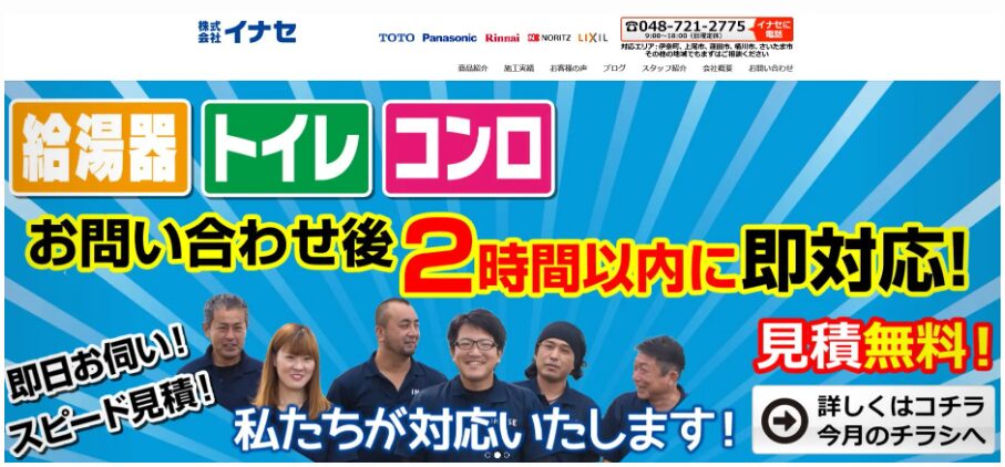 | 対応エリア | 伊奈町 上尾市 蓮田市 桶川市 さいたま市 その他お問い合わせください |