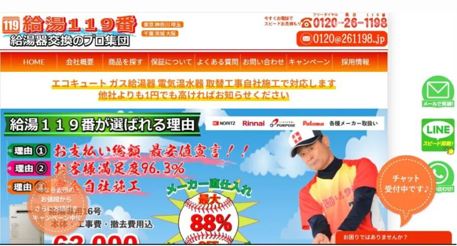 累計工事実績3万件以上の豊富な実績を持ち、給湯器三大メーカー正規販売店なので安心感があります。