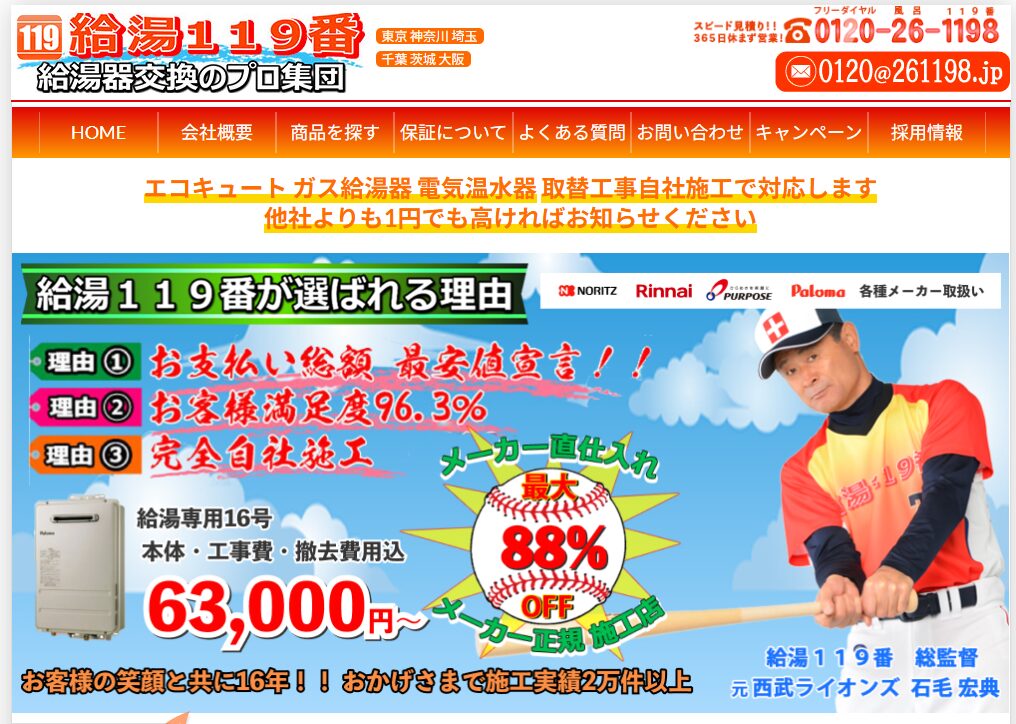 累計工事実績3万件以上の豊富な実績を持ち、給湯器三大メーカー正規販売店なので安心感があります。