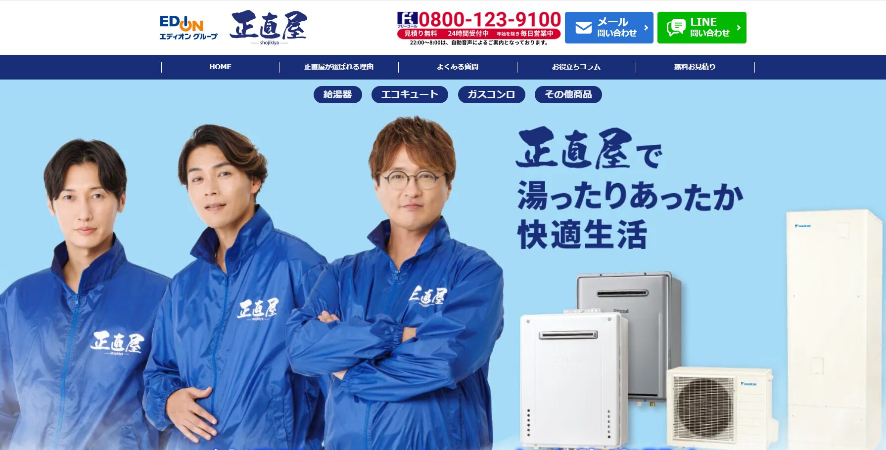 累計工事実績3万件以上の豊富な実績を持ち、給湯器三大メーカー正規販売店なので安心感があります。