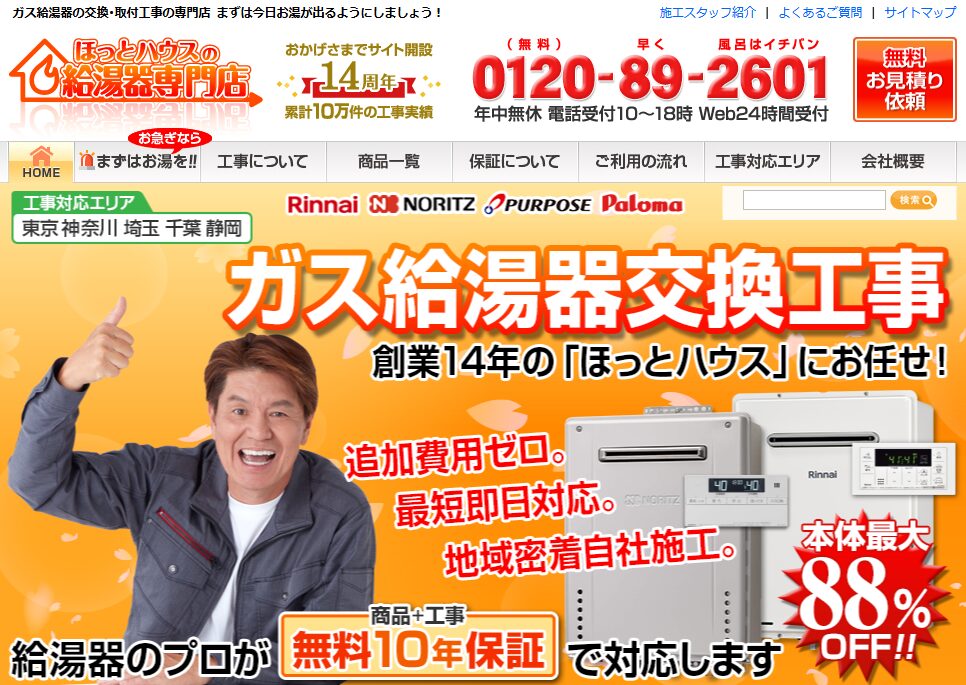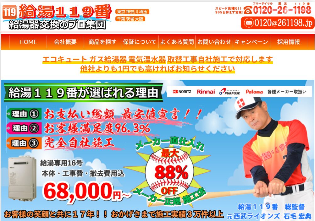 累計工事実績3万件以上の豊富な実績を持ち、給湯器三大メーカー正規販売店なので安心感があります。