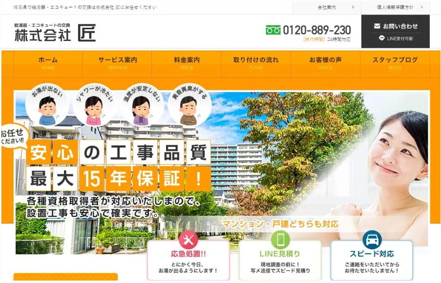 累計工事実績3万件以上の豊富な実績を持ち、給湯器三大メーカー正規販売店なので安心感があります。