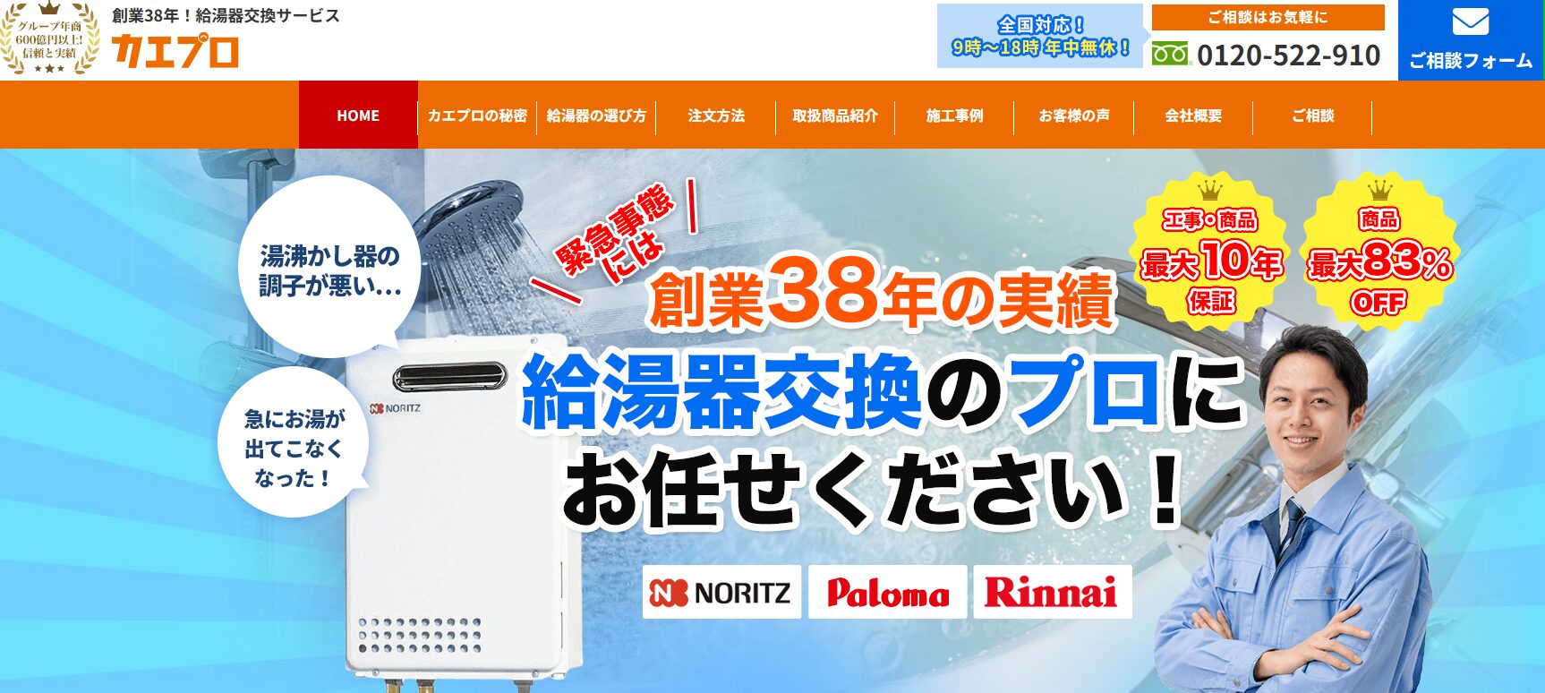 累計工事実績3万件以上の豊富な実績を持ち、給湯器三大メーカー正規販売店なので安心感があります。
