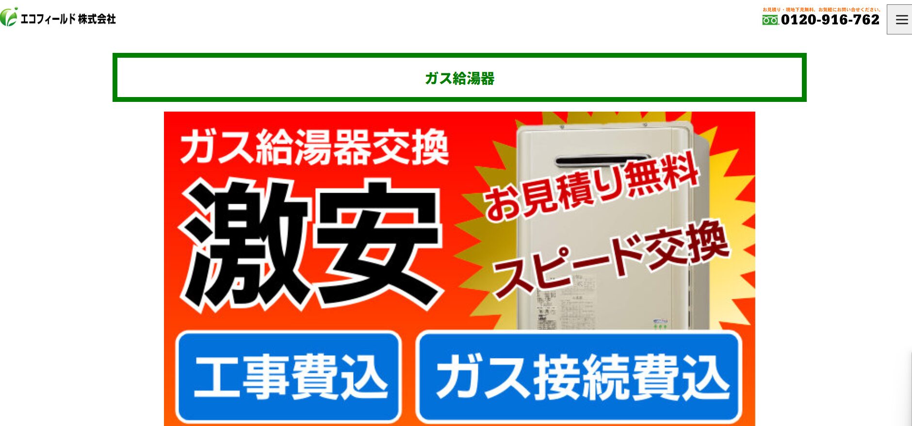 ・最大82%OFF!ガス給湯器本体+工事費も激安価格