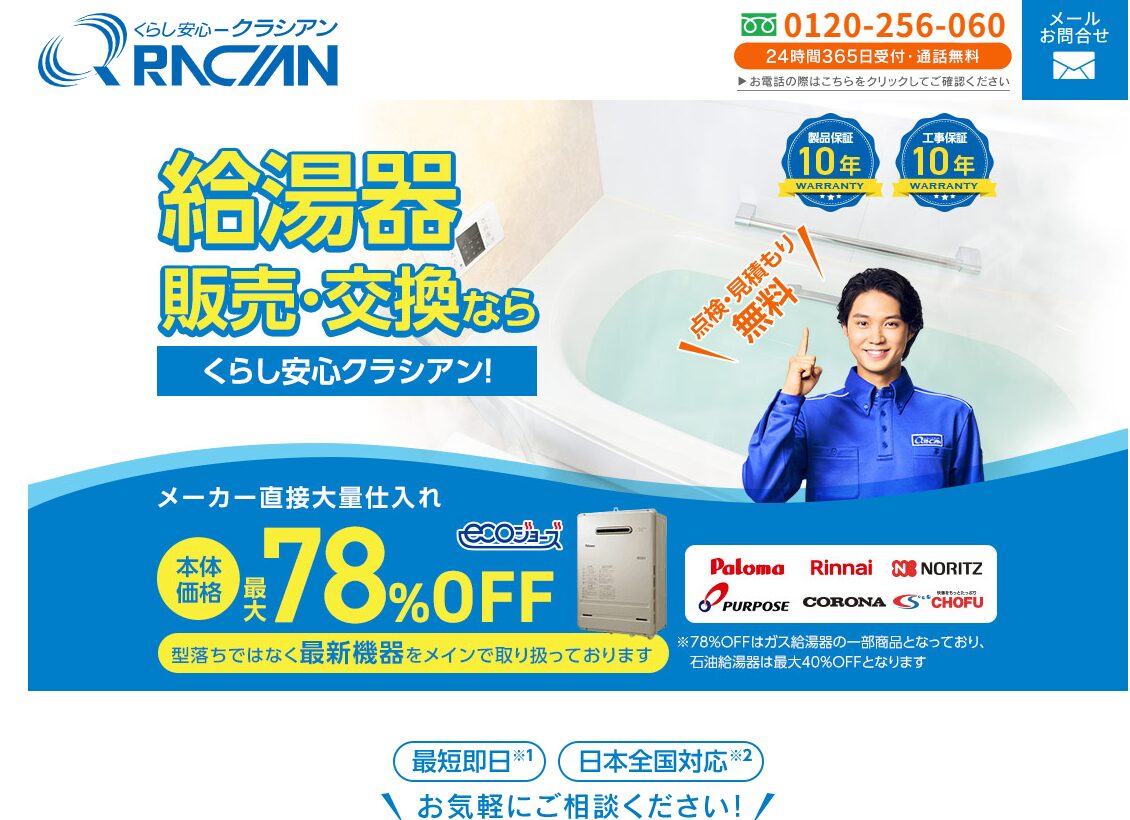 最大82%OFF!ガス給湯器本体+工事費も激安価格