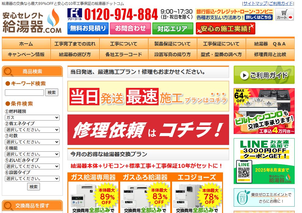 ・最大92%OFFで給湯器交換が超お得!