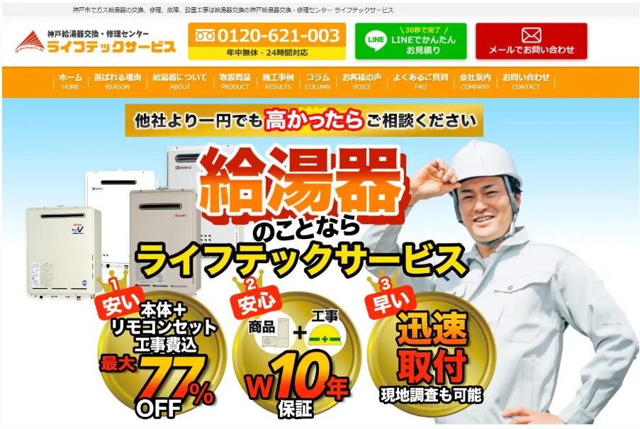 累計工事実績3万件以上の豊富な実績を持ち、給湯器三大メーカー正規販売店なので安心感があります。