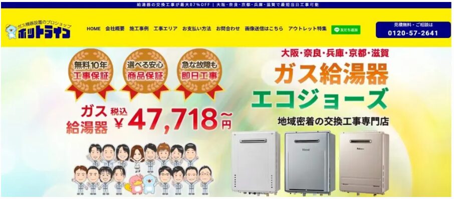 累計工事実績3万件以上の豊富な実績を持ち、給湯器三大メーカー正規販売店なので安心感があります。