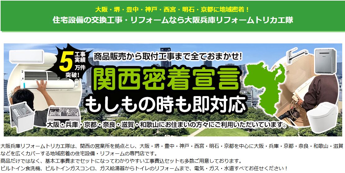 対応エリア | 大阪・堺・豊中・神戸・西宮・明石・京都を中心に大阪・兵庫・京都・奈良・和歌山・滋賀 |