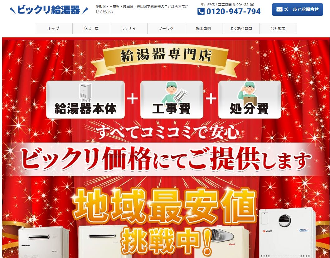 | 運営会社 住所 | ビックリ給湯器 名古屋市中区栄3-2-3 名古屋日興證券ビル4階 |