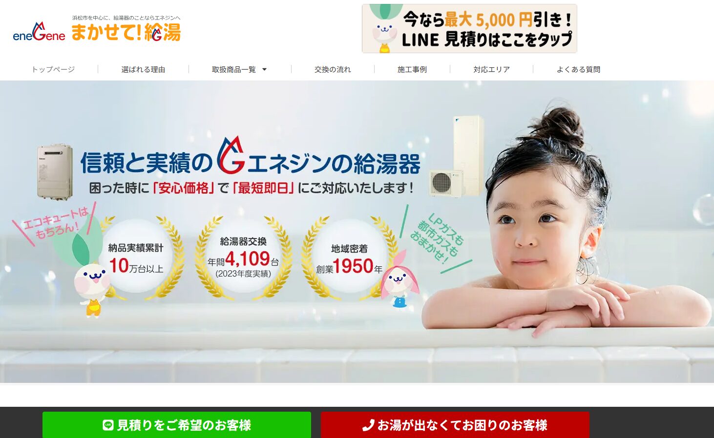 ・創業1999年、年間6.5万件超の給湯器工事実績