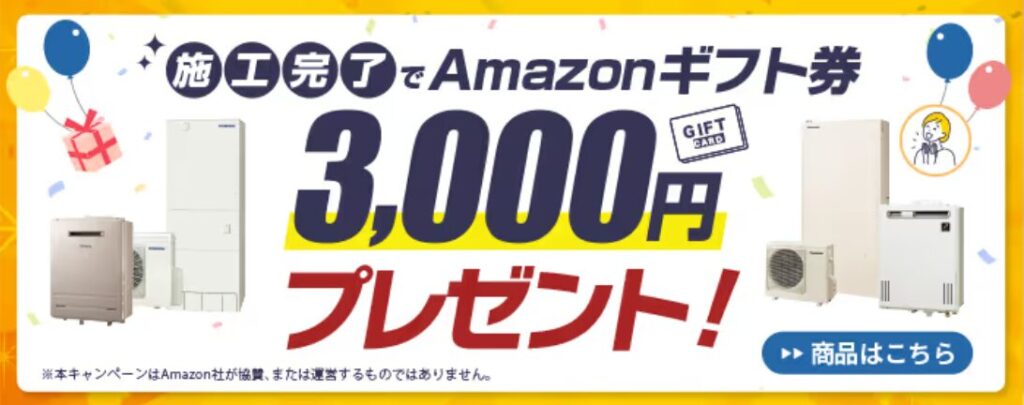 - 施工完了でAmazonギフト3,000円分(公式キャンペーン/※条件あり)