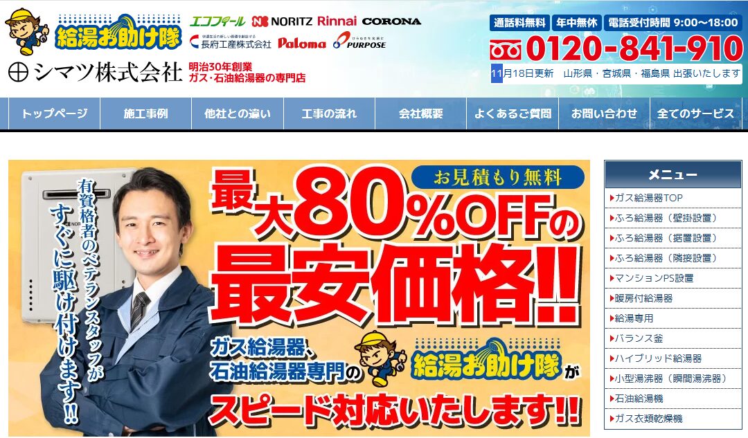 累計工事実績3万件以上の豊富な実績を持ち、給湯器三大メーカー正規販売店なので安心感があります。