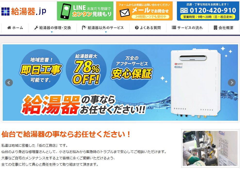 累計工事実績3万件以上の豊富な実績を持ち、給湯器三大メーカー正規販売店なので安心感があります。