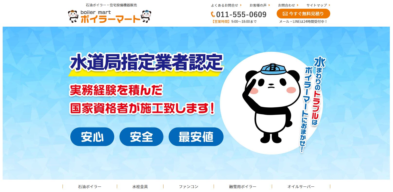 ㈱ボイラーマートは、給湯器・ボイラー交換工事専門店です。札幌市の給湯器交換でも、問い合わせから見積もり、工事までの流れが整理されており、急ぎの場面でも進めやすいです。現地調査不要でスマホから撮った写真を送れると案内しているため、相談の入口がシンプルです。申し込み前に型番と設置まわりの写真を用意すると、見積もりが具体化します。
