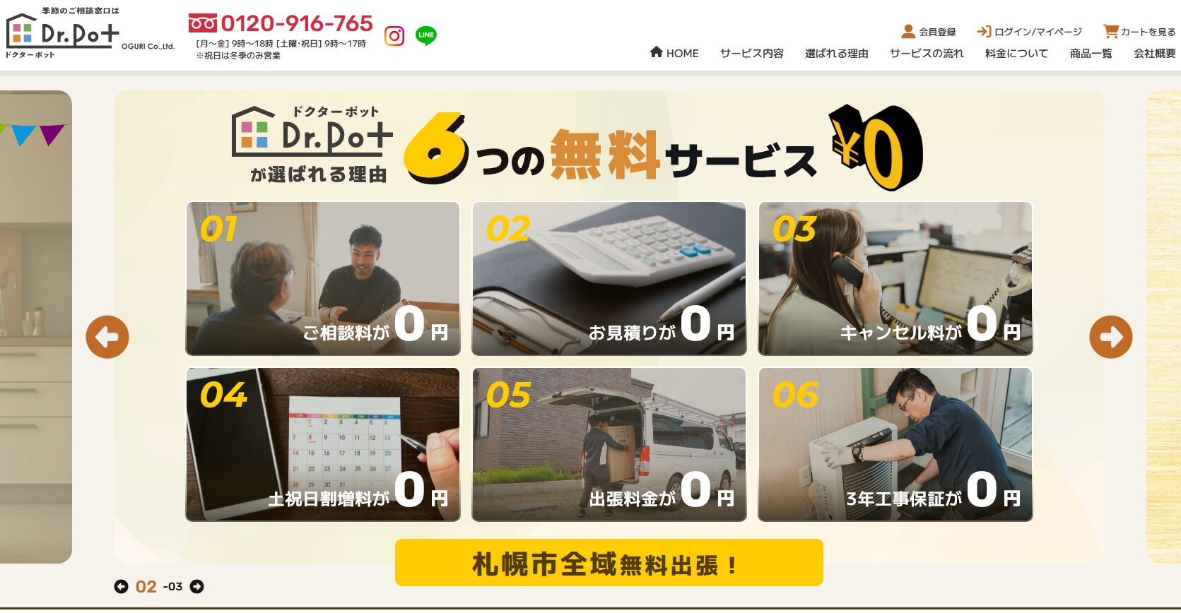 | 対応エリア | 札幌市全域(中央区、北区、西区、東区、南区、白石区、豊平区、清田区、厚別区、手稲区) 江別市、北広島市、石狩市、当別町、長沼町、南幌町、恵庭市、千歳市 |