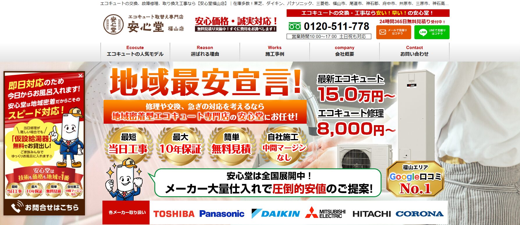 - 最短駆けつけ&当日工事対応や10年保証クラスのアフターサポート(※公式要確認)が心強い