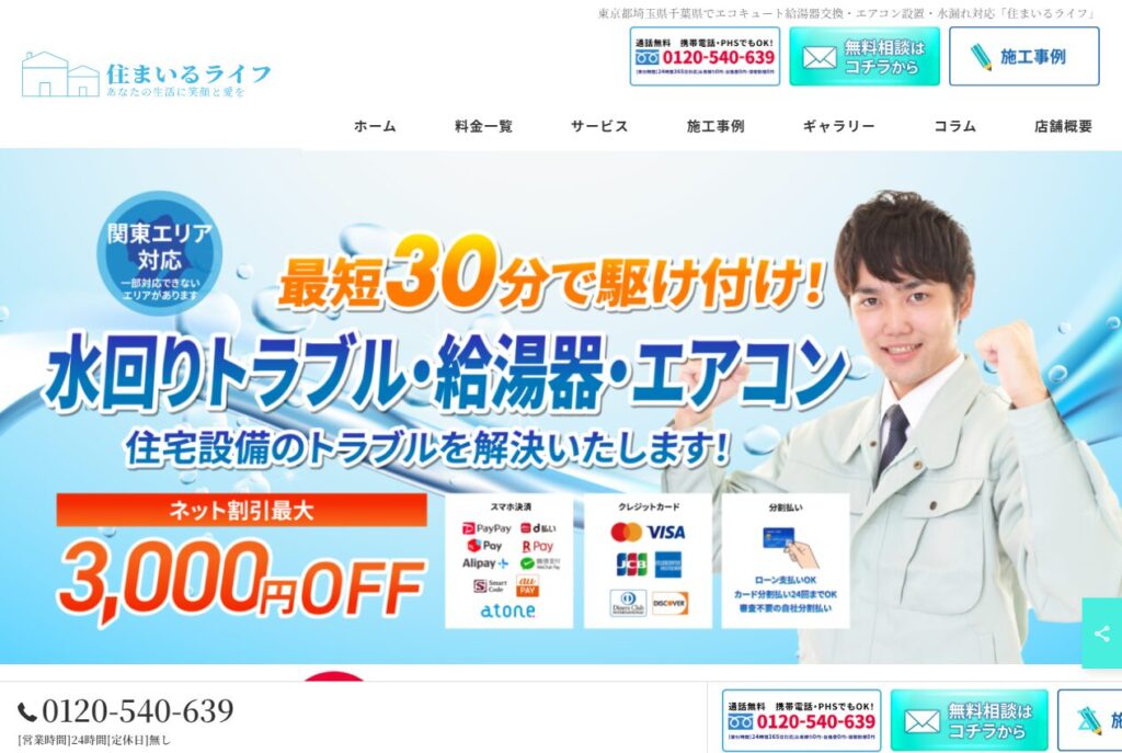年中無休24時間体制で申し込みを受け付けているので、エコキュートの急な故障時に頼れる業者です。