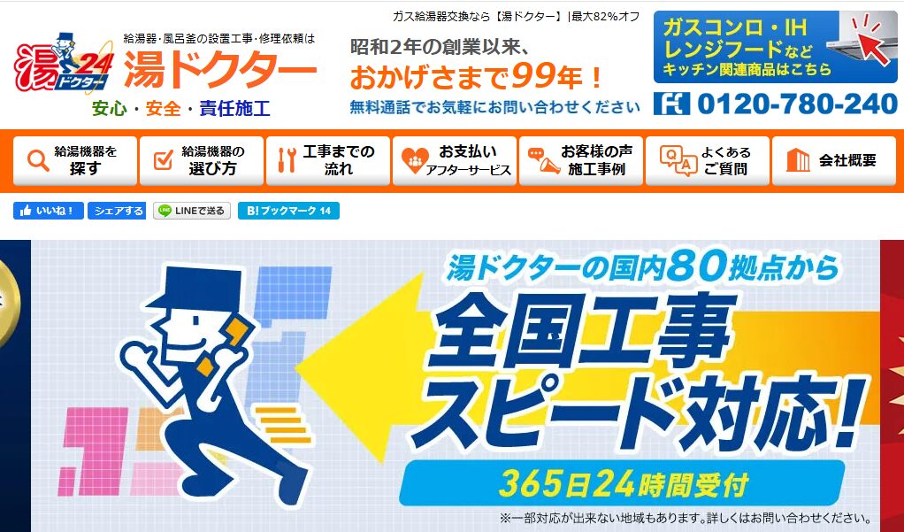 • 公式サイトに本体+標準工事コミコミの総額が掲載されており、給湯器交換の費用感を事前に把握しやすい