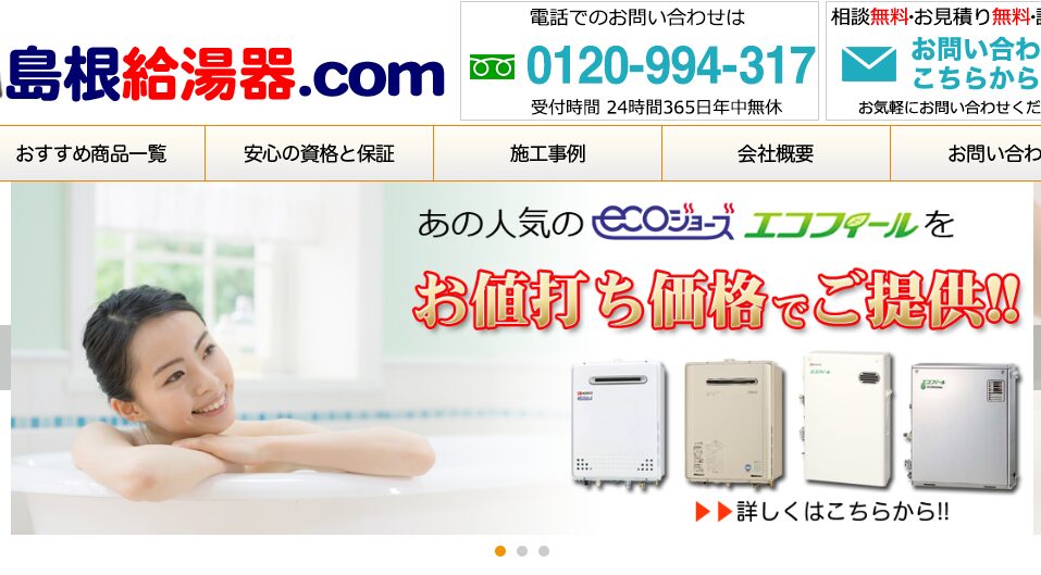 島根給湯器.comは、給湯器・エコキュート交換工事専門業者です。島根県全域を施工エリアとしており、
