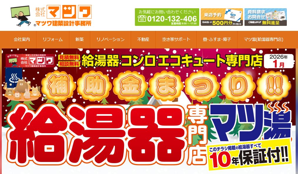 詳細な料金表は公式サイトに記載なし(要見積もり) ※給湯器専門店「まつ湯」などのサービス展開あり |