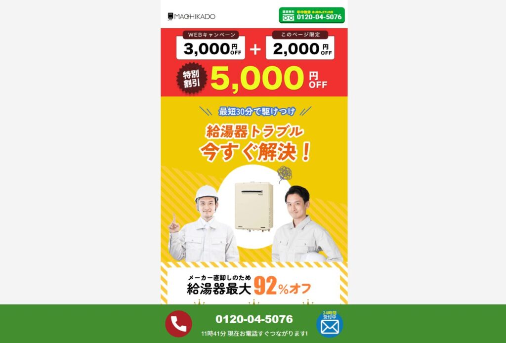 年中無休・最短即日30分で駆け付けてもらえるので、申し込みの時間帯によっては、その日のうちにお湯が使えるようになります。