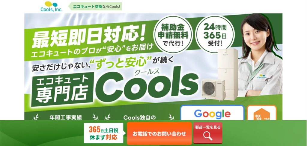 株式会社Coolsは、エコキュート交換を専門に行う業界最安値を目指す業者です。