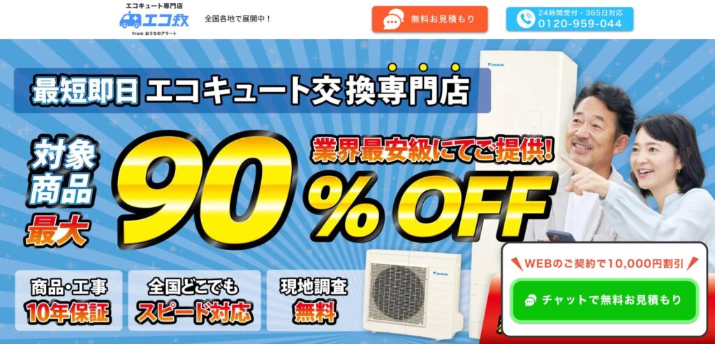 エコ救は、2022年に設立された株式会社uloieが運営するエコキュート交換業者です。