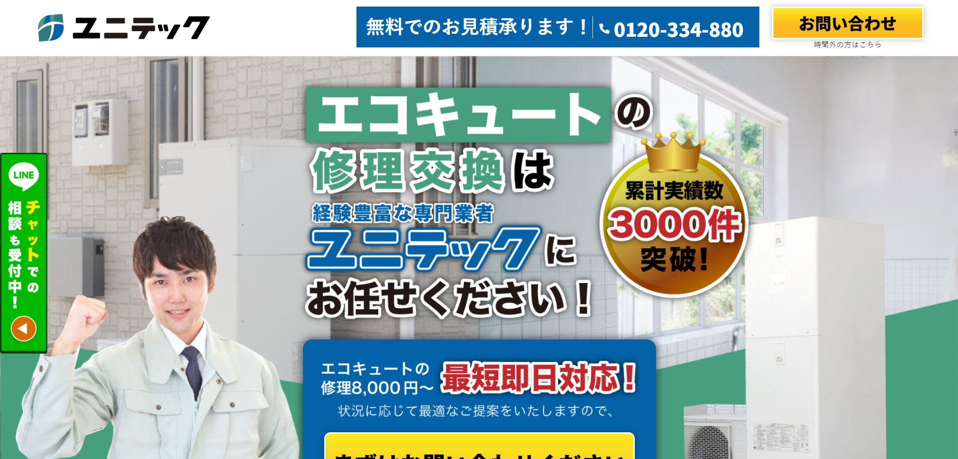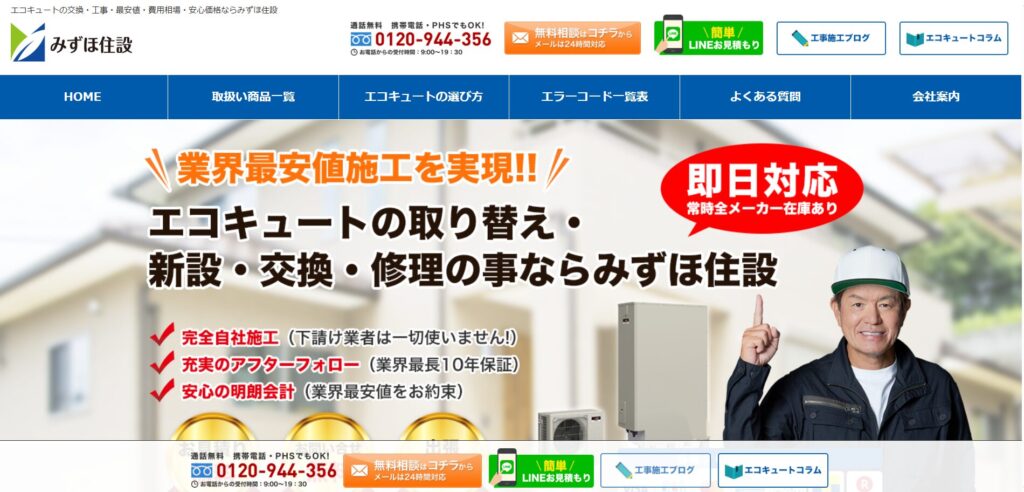 年中無休24時間体制で申し込みを受け付けているので、エコキュートの急な故障時に頼れる業者です。
