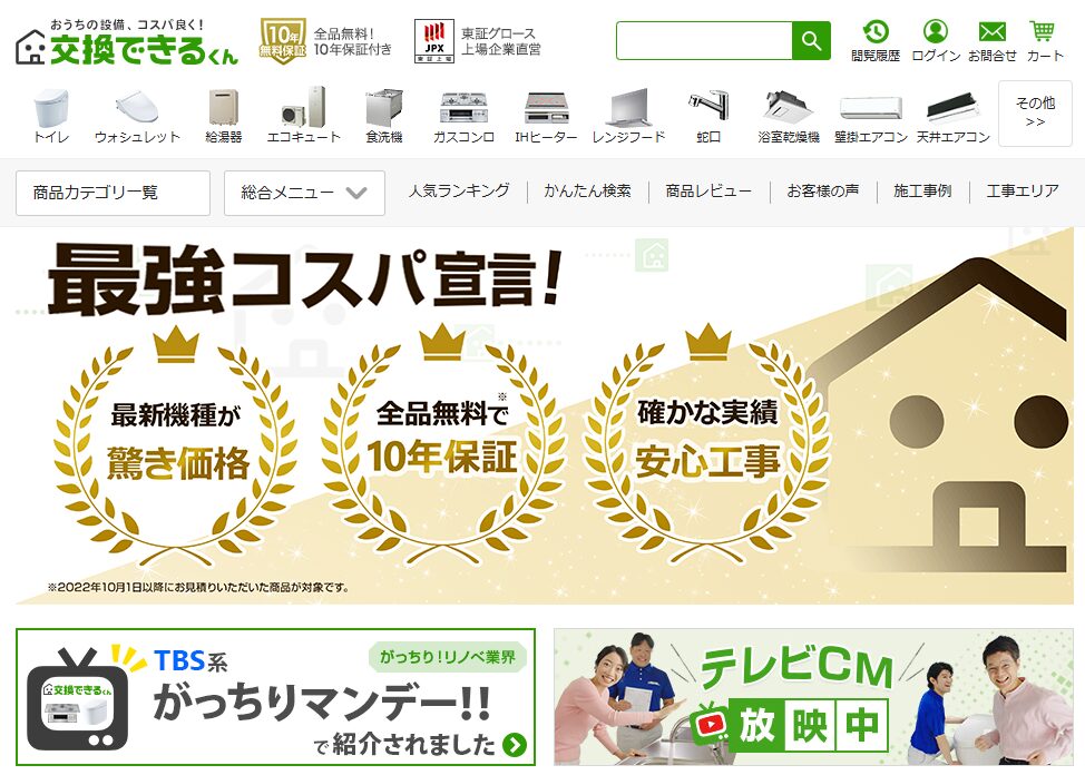 - 商品と工事が無料の10年W保証で交換後も安心
