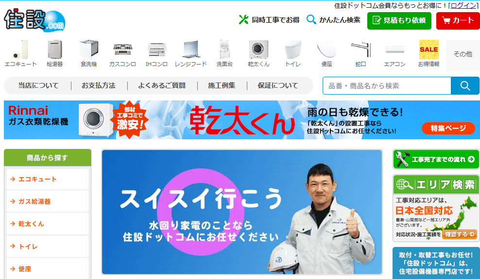 - 給湯器本体最大82%OFFで総額を抑えやすい料金設定