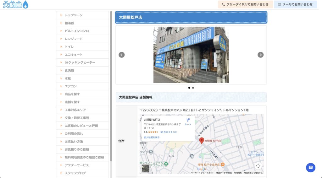 本社は大阪にありますが、新宿区に東京支店(運営本部)を擁しており、松戸市全域に対応しています。