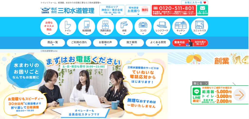| サービス内容 | 水道事業会社、給湯器交換、水まわりトラブル対応・リフォーム |