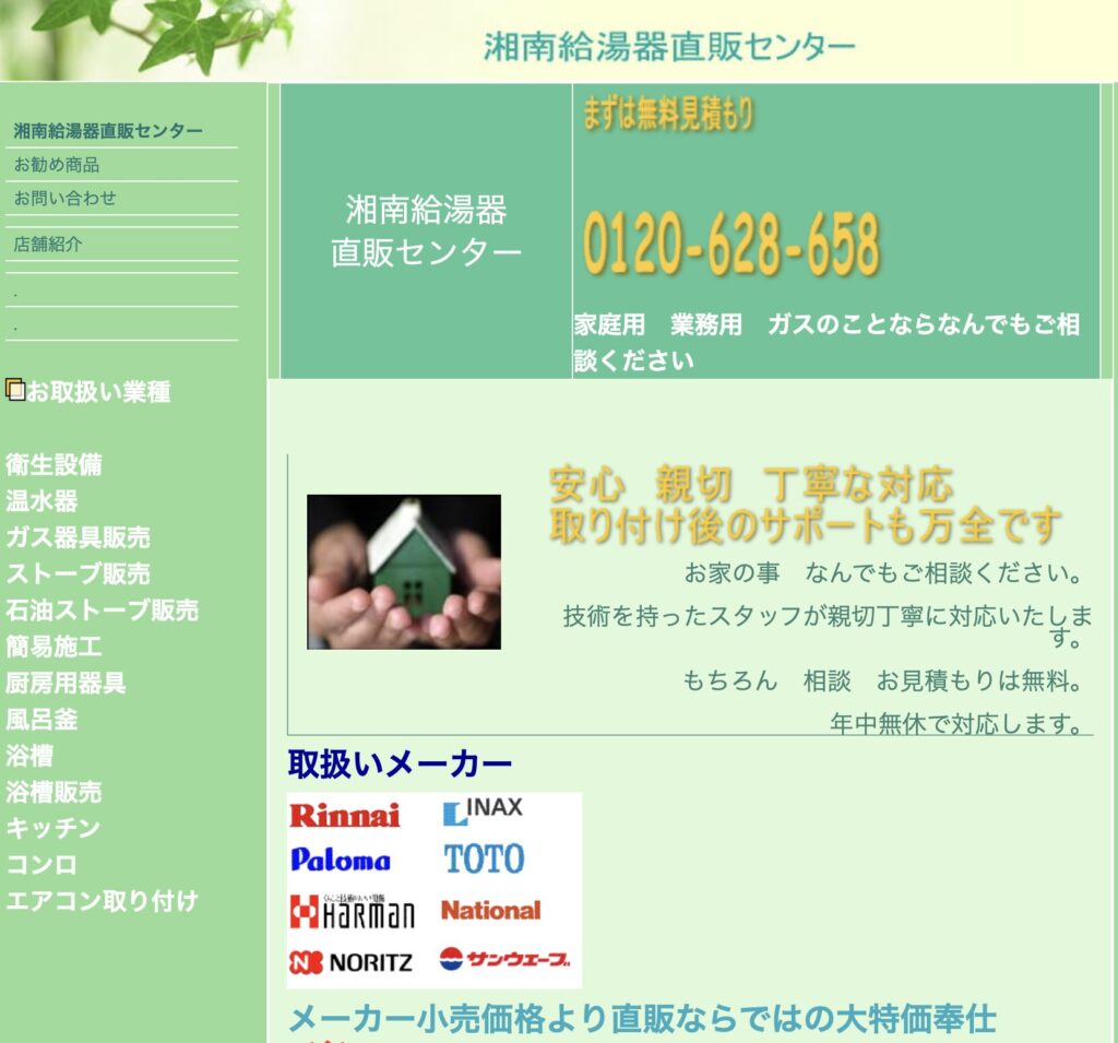 | 運営会社 | 湘南給湯器直販センター 神奈川県藤沢市本藤沢3丁目17-12 |