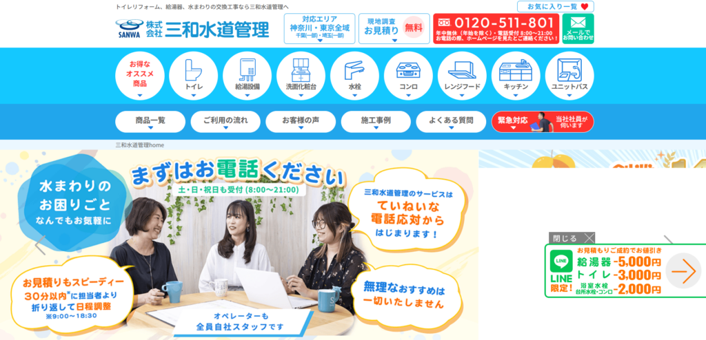 | サービス内容 | 水道事業会社、お風呂・トイレ・水まわり交換、給湯器交換 |