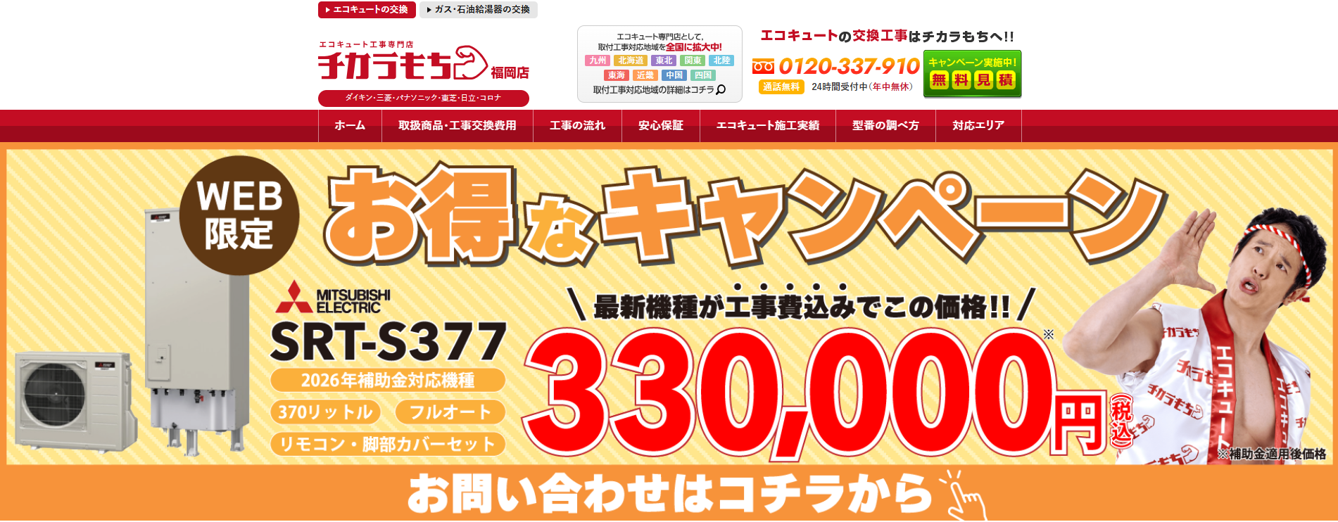 運営会社の株式会社ミズテックは、住宅省エネ支援事業者に登録されているため、経済産業省の給湯器補助金を利用しての交換が可能です。補助金を利用した場合、定価100万超のエコキュートを工事費込み30万円台で導入することができます。