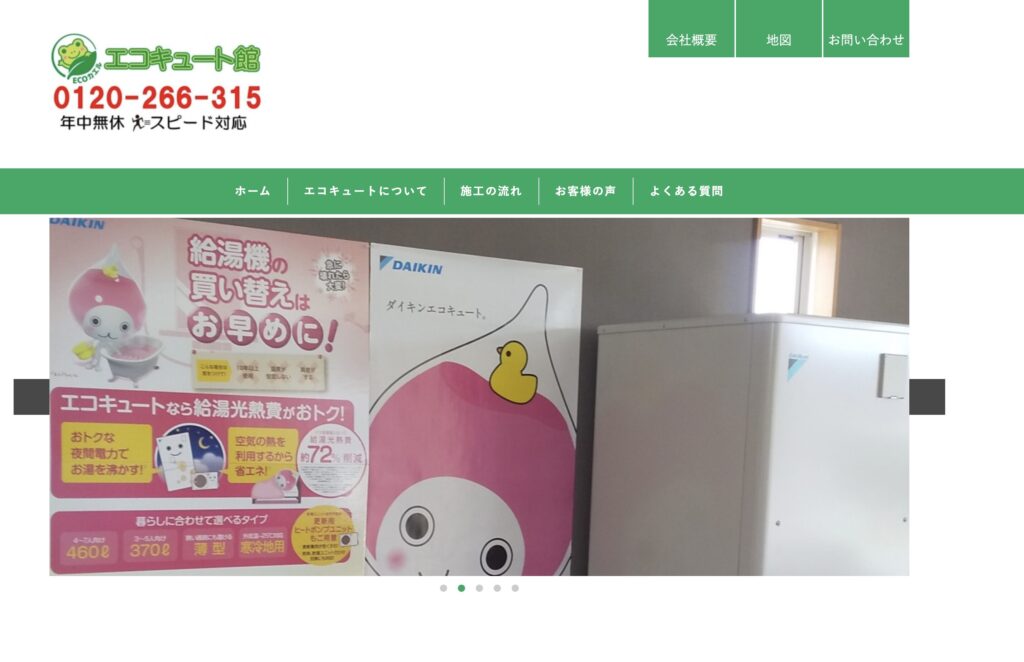 年中無休24時間体制で申し込みを受け付けているので、エコキュートの急な故障時に頼れる業者です。