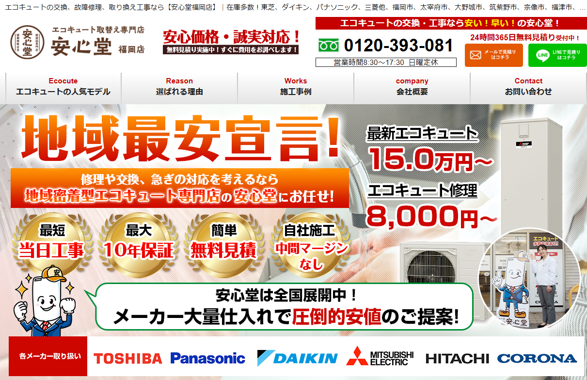 運営会社は東証グロース市場に上場しており、コンプライアンスや施工品質も安心です。在庫を豊富に確保しているため、人気のエコキュートや給湯器も、最短即日または翌日のスピード工事に対応可能な場合があります。