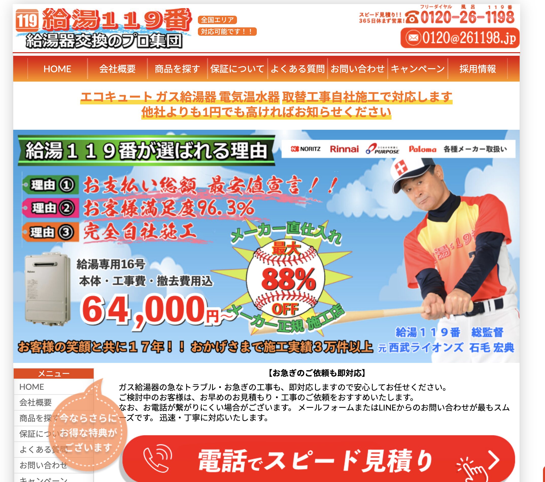 | 運営会社 | 給湯119番埼玉店 三郷市戸ヶ崎3丁目129−3 |