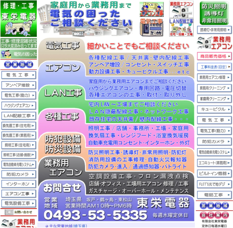| 運営会社 | (有)東栄電器 坂戸・鶴ヶ島・東松山営業所 埼玉県東松山市 上野本1317 |