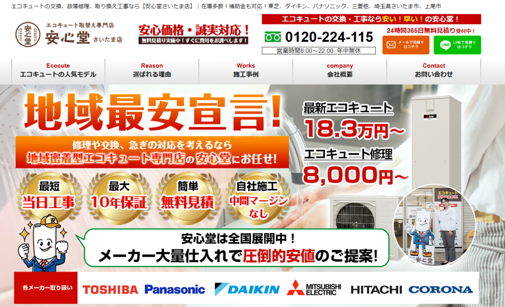 | 運営会社 | エコキュート取替え専門店 安心堂さいたま店 埼玉県さいたま市見沼区 深作2丁目24−25 |