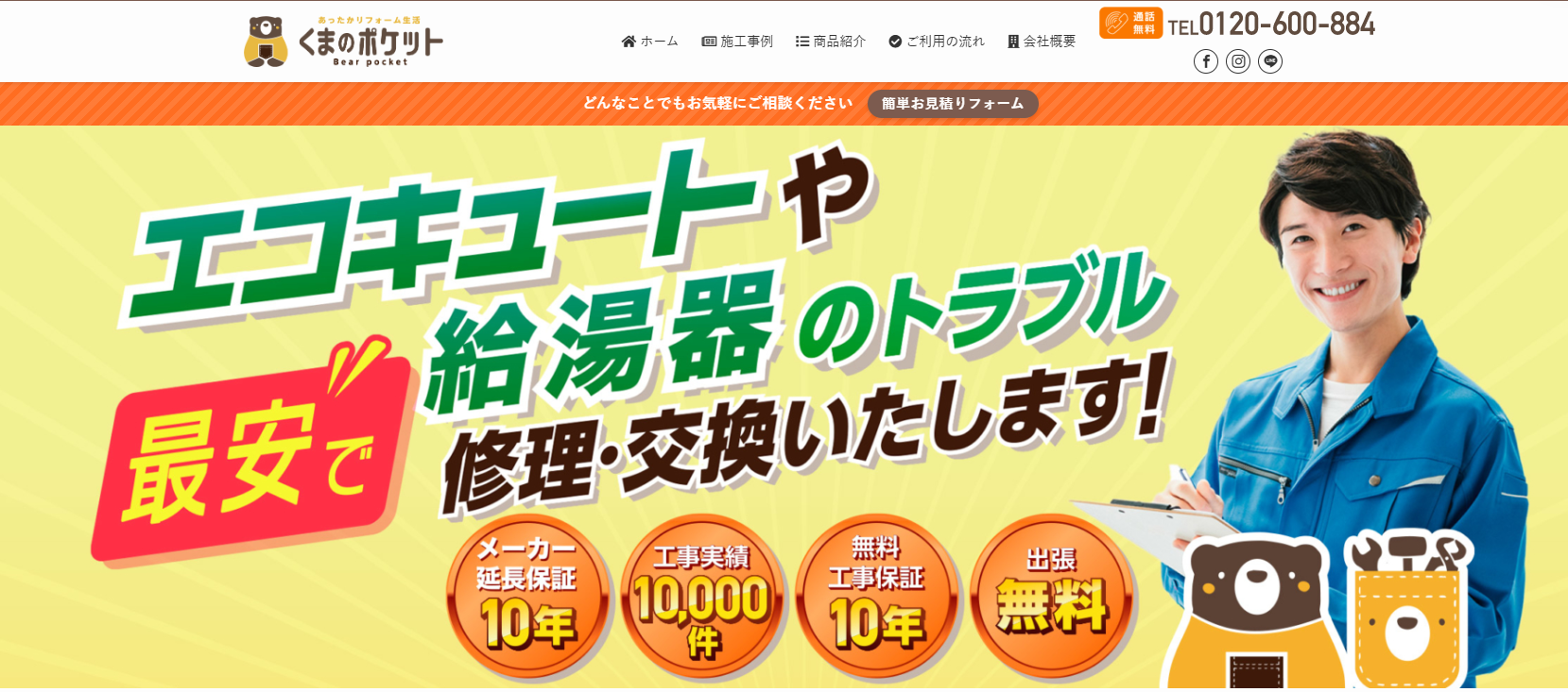 年中無休24時間体制で申し込みを受け付けているので、エコキュートの急な故障時に頼れる業者です。