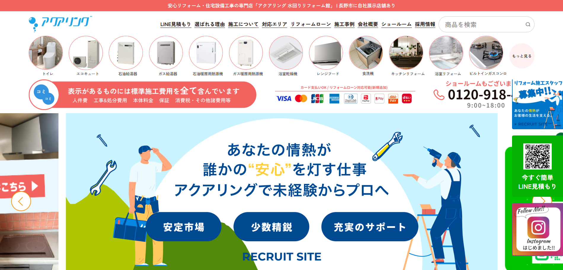 長野市エリアも自社サービススタッフが対応。ネット完結型ながら、上場企業ならではの高品質な施工を長野市内全域で提供しています。