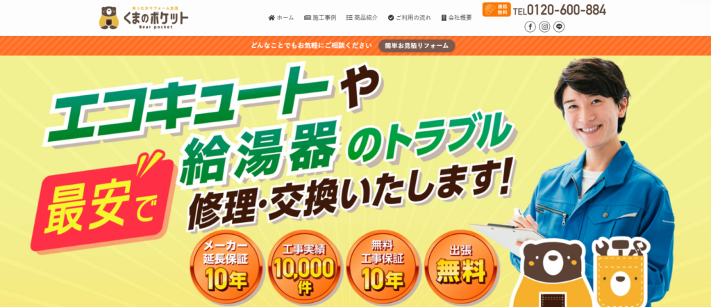 年中無休24時間体制で申し込みを受け付けているので、エコキュートの急な故障時に頼れる業者です。