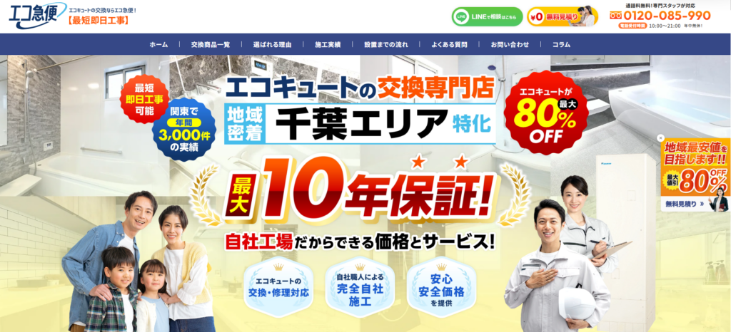 年中無休24時間体制で申し込みを受け付けているので、エコキュートの急な故障時に頼れる業者です。